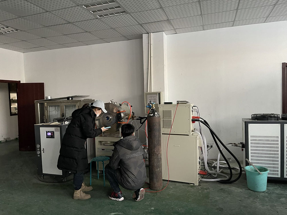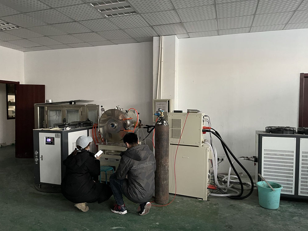 上图是刘建华教授的两名学生正在做真空悬浮熔炼炉实验,公司员工也是积极配合,实验进展顺利。